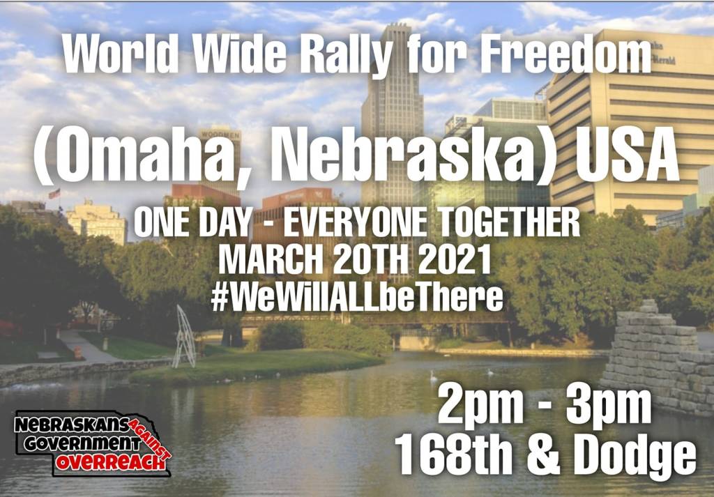Nebraskans Against Government Overreach is participating in the Global Day of Protest with many other countries for a World Wide Rally for Freedom (and Democracy). We are hosting an event in Kearney and in Omaha at 2pm!