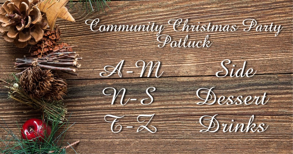 Of course, we will be doing a potluck again this year, so make sure you know which item you’ll be bringing with you!!!