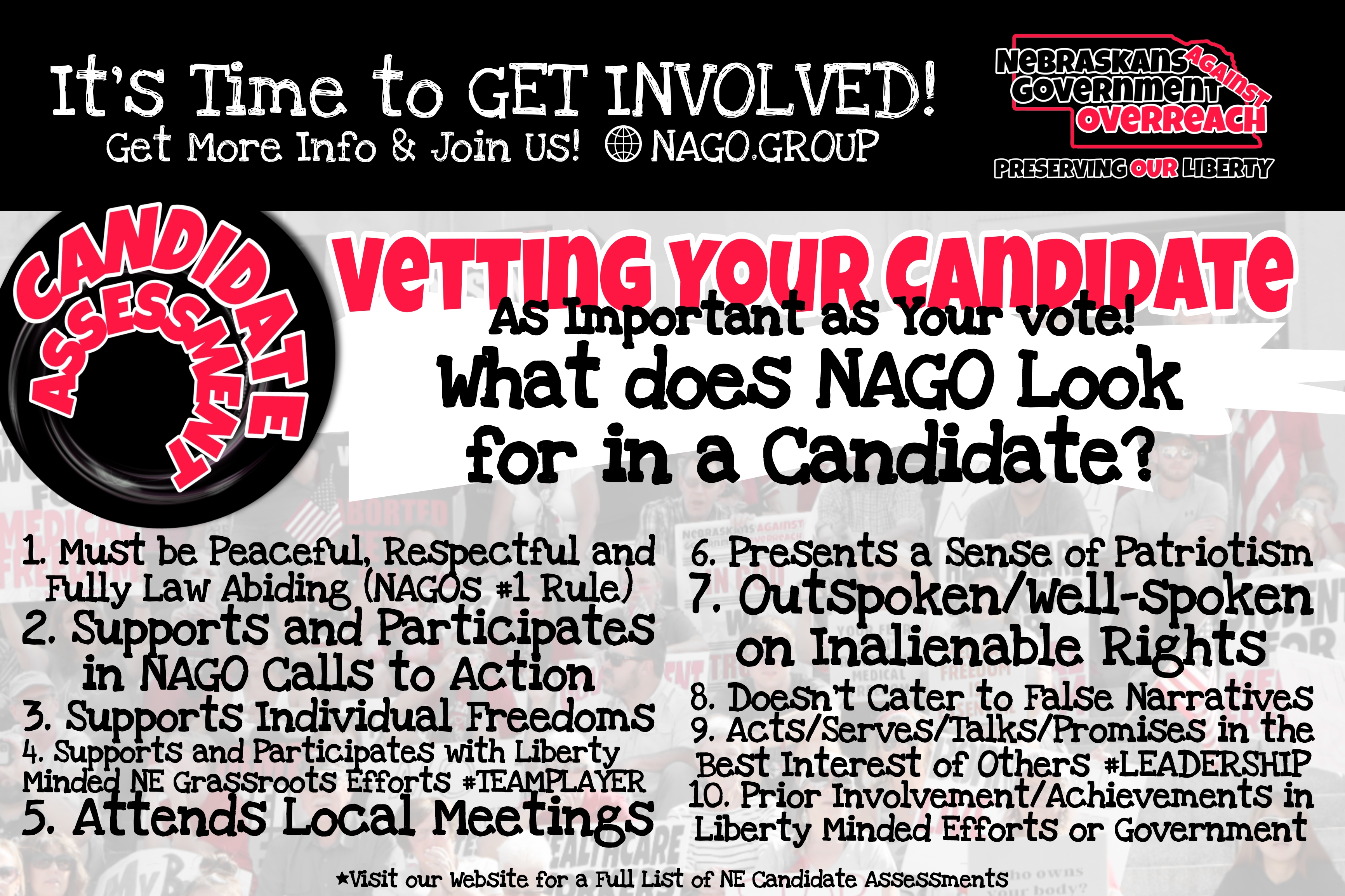 The assessments are subject to change upon receiving new information, observations or actions of candidates listed. Not all links are currently active but will become active as the assessments are completed! NAGO works to remain open minded and objective, we acknowledge that what is true one day, may not be true the next.