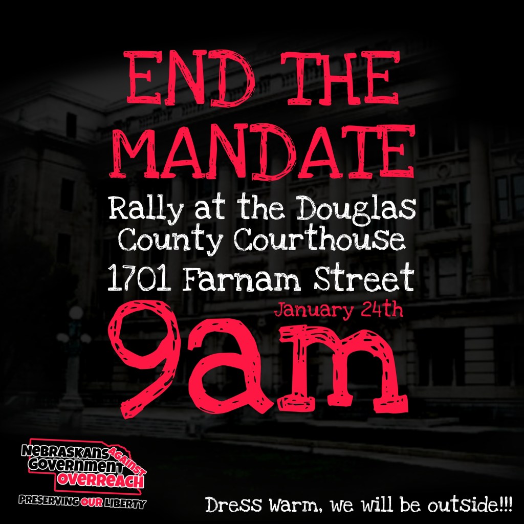 Then join us again Monday at 9am outside the County Courthouse for a rally to END the Unconstitutional Omaha Mask Mandate!