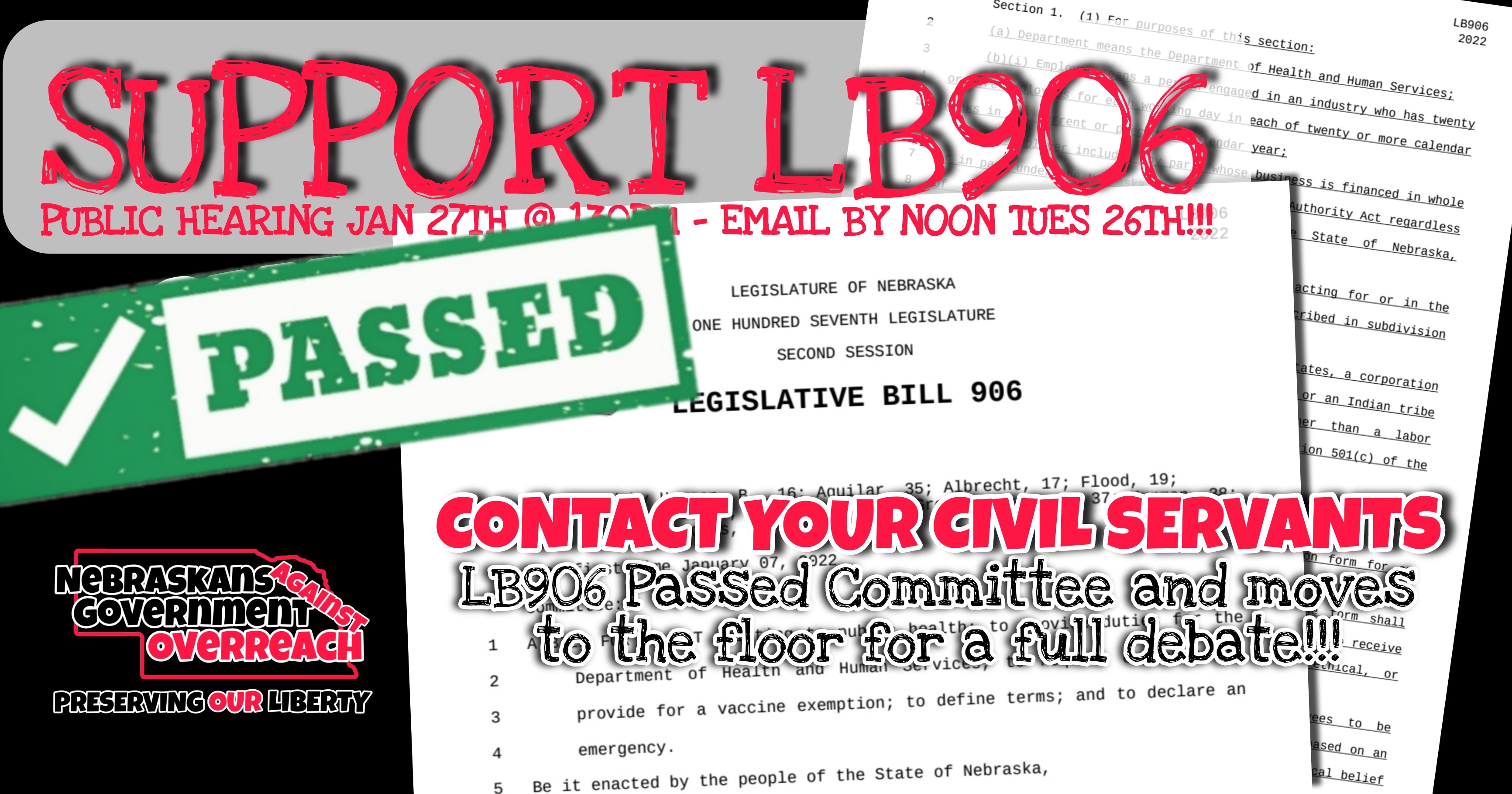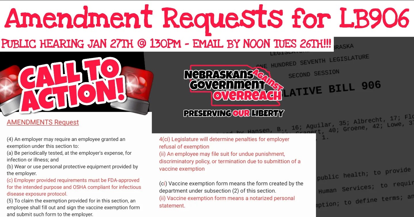 Nebraskans Against Government Overreach – Calls to Action – Legislative Public Testimony Schedule for Week of 2.07.2022 – 2.11.2022