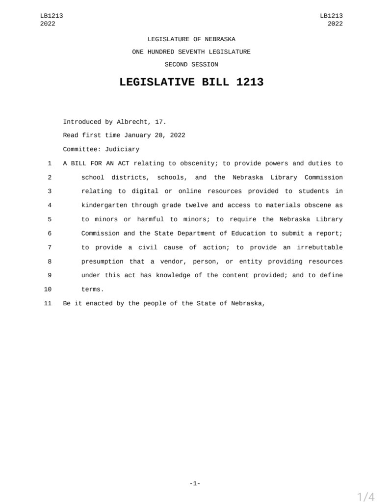 Bill Text: https://nebraskalegislature.gov/FloorDocs/107/PDF/Intro/LB1213.pdf