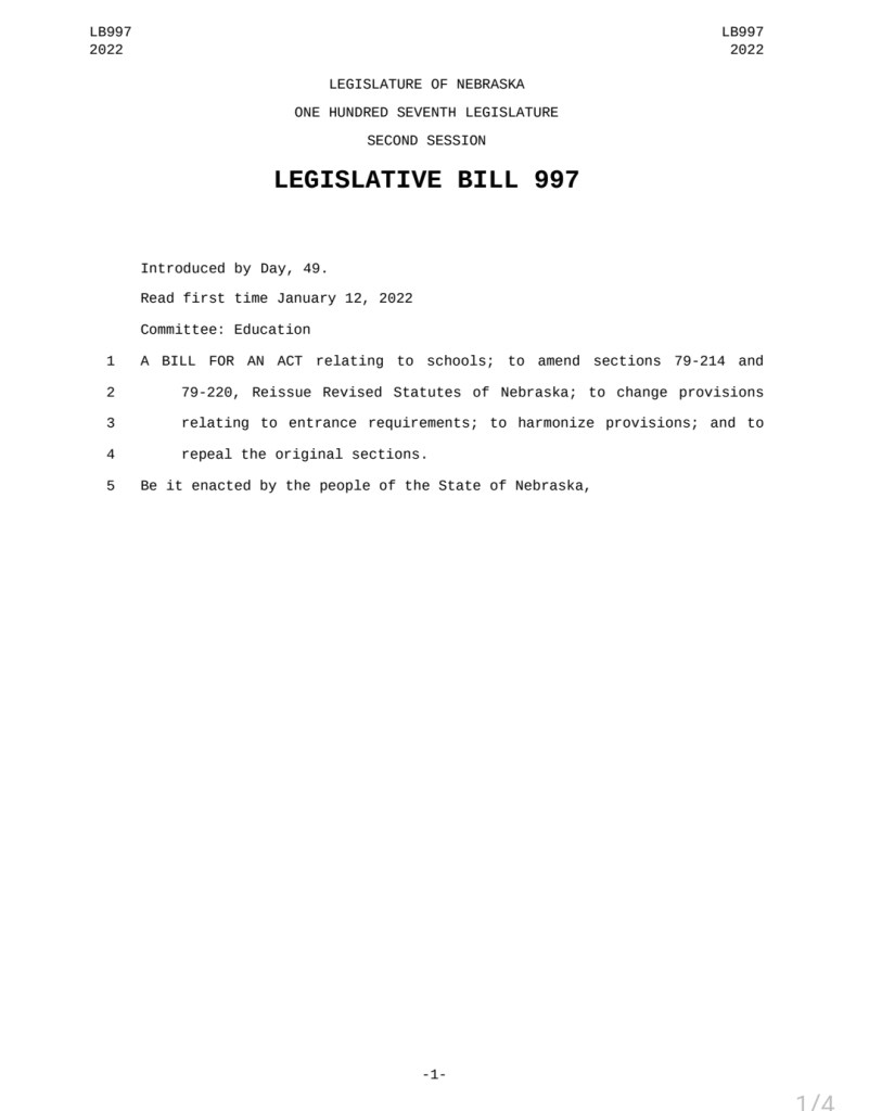 Bill Text: https://nebraskalegislature.gov/FloorDocs/107/PDF/Intro/LB997.pdf
