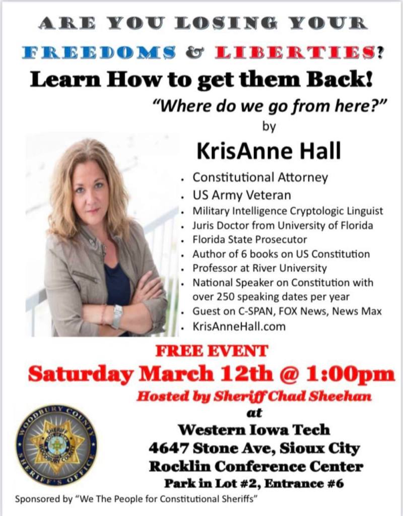Date:Sunday Feb 27th, 2022 Time: 2:30 pm Venue: Calvary Community Church (1st& Superior Street) in the Royal Room.RSVP is required to guarantee your seat. Email sowersforlibety@gmail.com or text/call 515-510-3940