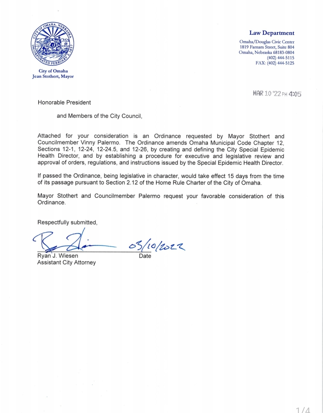 The council’s meeting is scheduled to start at 2 p.m. Tuesday in the city’s legislative chambers, 1819 Farnam St. A livestream can be accessed via www.cityofomaha.org