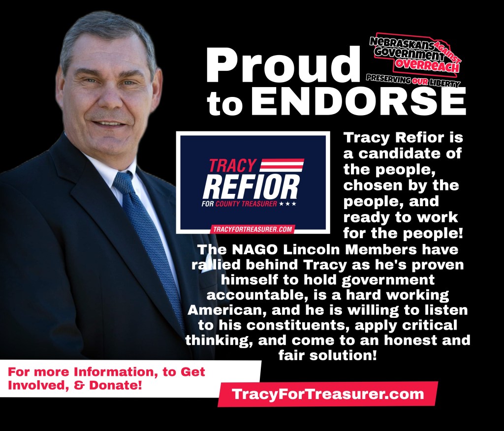 This afternoon we extend our endorsement to Tracy Refior for County Treasurer in Lincoln!
