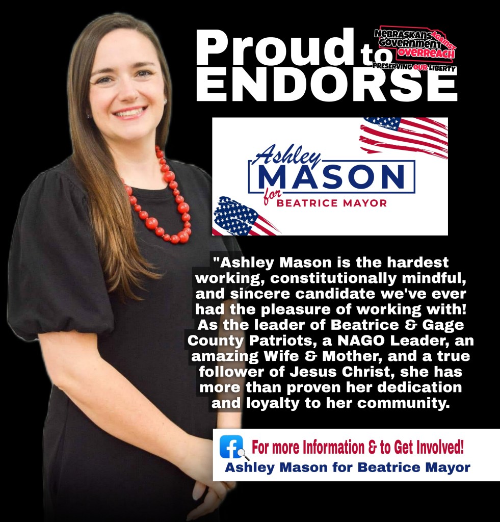 Today, we face many controversial and sometimes volatile topics, with that in mind NAGO wholeheartedly supports Ashley Mason as the future mayor of Beatrice best equipped to handle adversity and through her words find unity and prosperity for their community.