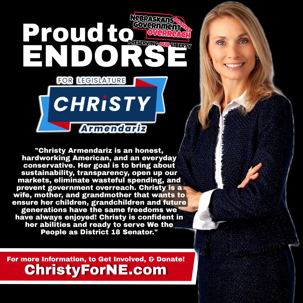 Christy believes in EQUALITY and a free and open market. Which is why she has committed herself to getting involved and applying critical analysis to every decision affecting Nebraskans. ChristyForNE.com