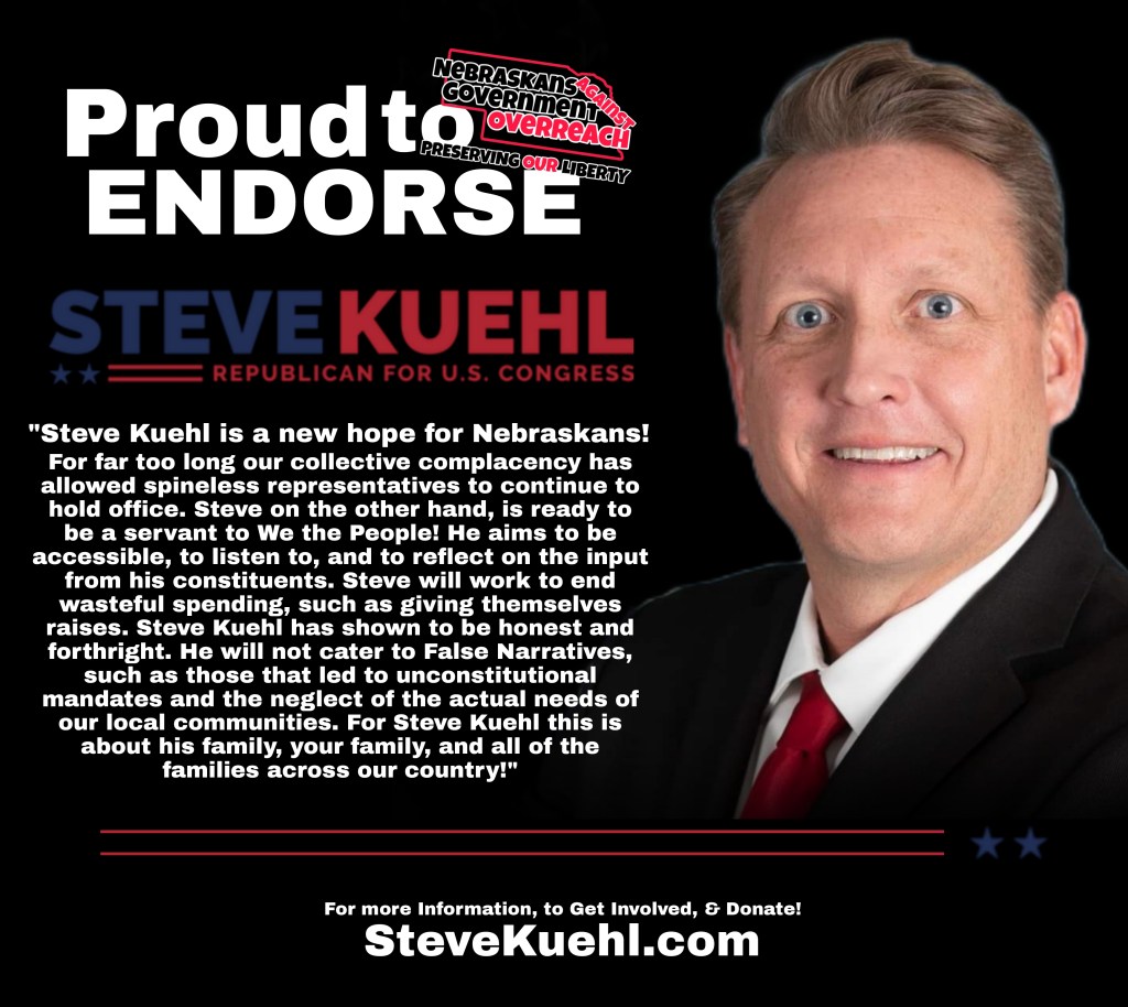 Steve Kuehl has been making waves through the NAGO community! His expression of frustrations with the current representation in Congress mirrors the frustrations of countless Nebraskans and millions of Americans. The goals, values and ethics shared has NAGO highly encouraged by Steve Kuehl for U.S. Congress District 2!! SteveKuehl.com
