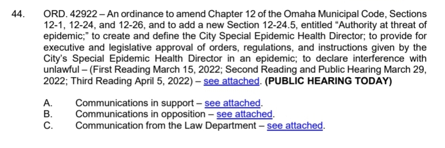 At this current time the Omaha City Council has received for more opposition to stripping the city health director of her power. If you wish to see our government limited and the unelected bureaucrat held accountable….