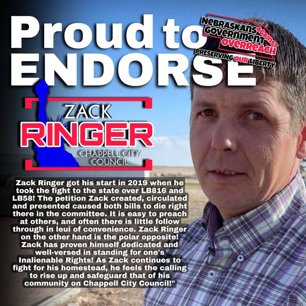 We kick off our Monday morning with an endorsement to the hardest working American #Man NAGO has had the pleasure of collaborating with! Zack Ringer has been an amazing advocate for our state, his community, and his own family. His family and the promises of Freedom in this country are the very reasons Zack is so involved and will remain involved. NAGO is incredibly proud to endorse Zack Ringer for Chappell City Council!