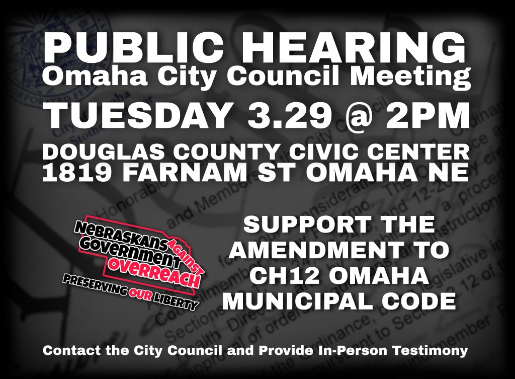 Get your testimony together and EMAIL the Omaha City Council members to SUPPORT the amendment to Ch 12 of the Omaha Municipal Code!!!