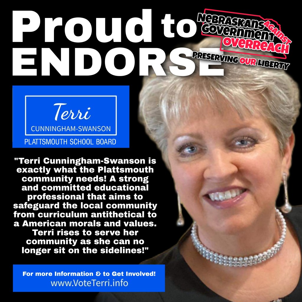 It is thrilling to endorse phenomenal candidates such as Vote.Terri.Info for Plattsmouth School board!!! An advocate that has first hand experience with those most affected by board decisions and a roadblock to harmful curriculum in the future! http://www.VoteTeri.info