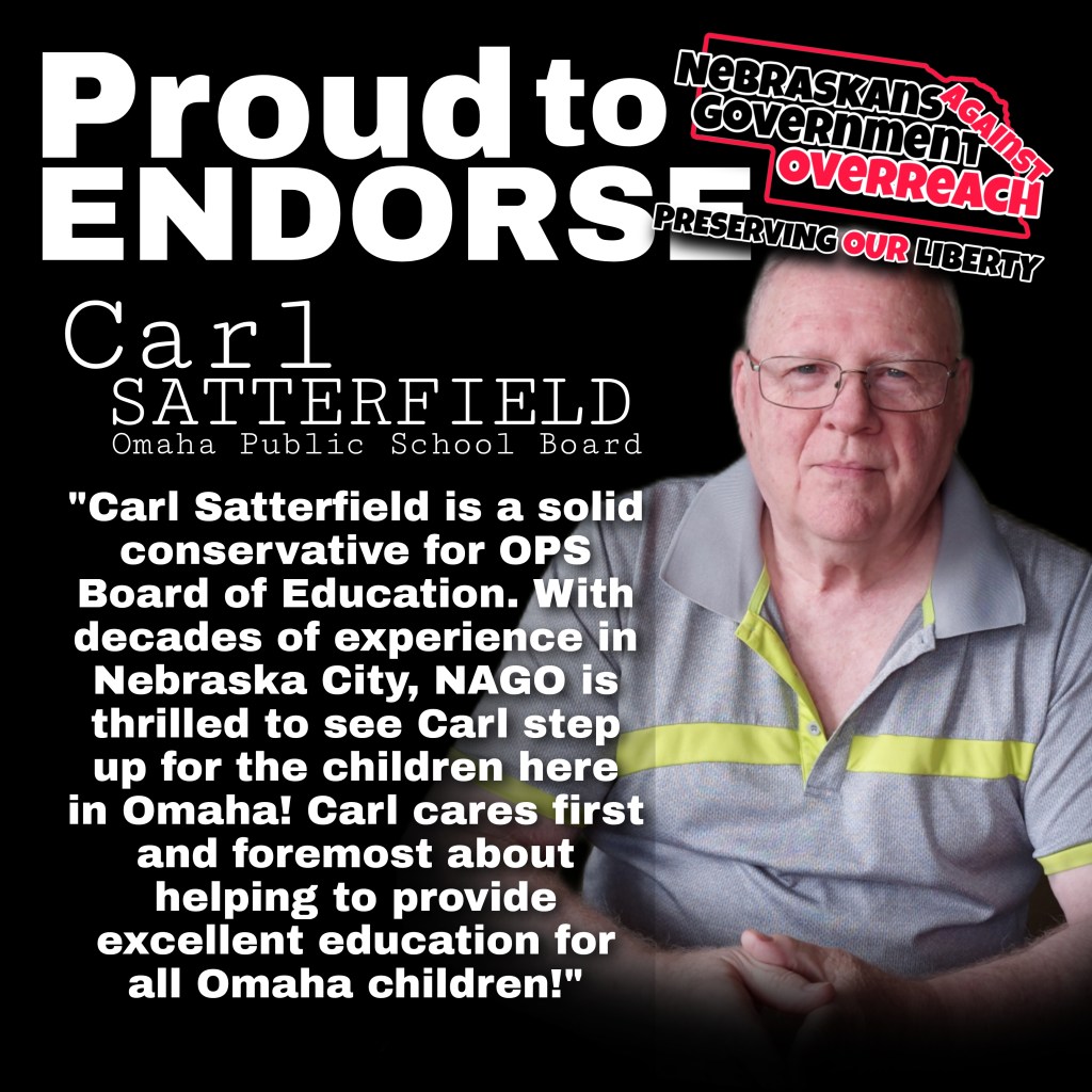 Carl Satterfield has been the ONLY conservative candidate for OPS School Board to reach out to us, to express an understanding of parental rights and an understanding of the bounds of the boards. Carl has expressed the desire to meet with or talk to whomever would like more information in order to provide an open and transparent relationship between the board and the Omaha community affected by board decisions!!