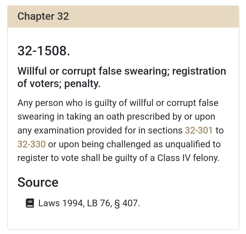 Current Senator, and candidate for reelection, Megan Hunt has violated 2 state statutes by attempting yet another likely “joke”.