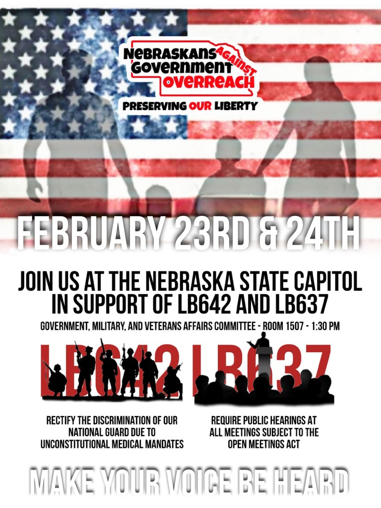 #NAGO #MedicalFreedom #SupportOurTroops #LB642 #LetThemSpeak #LB637 #HoldingGovernmentAccountable #FreedomForAll #EndTheMandates