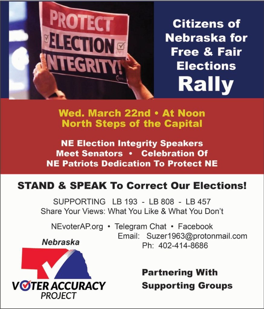 Another big day tomorrow!! More morning debate on LB574, Election Integrity rally at noon, and several bills to testify on!!
