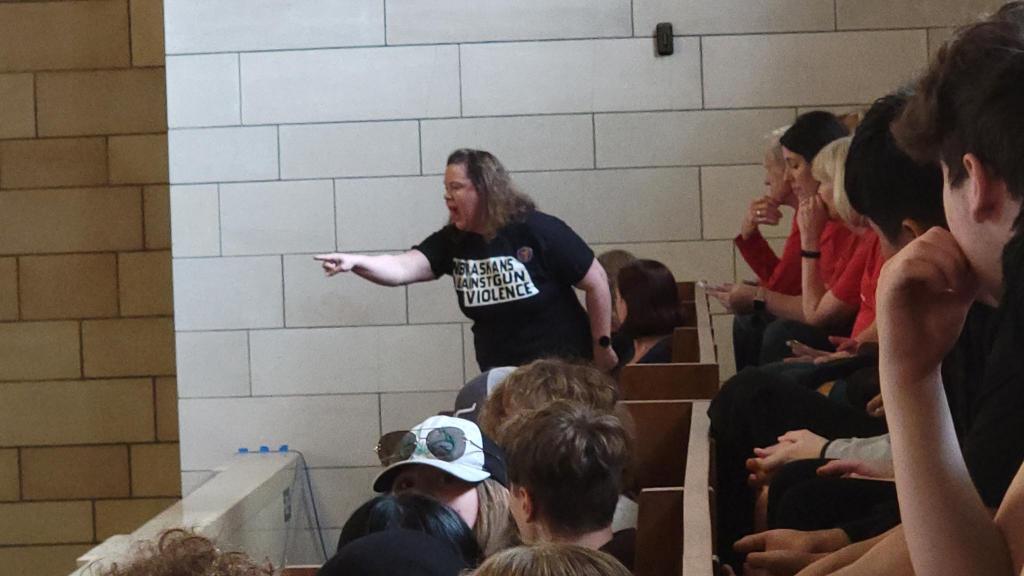 Melody Vaccaro, head of Nebraskans Against Gun Violence. She’s now barred and banned from the Capitol. A good lesson in following the rules, because they mean it.