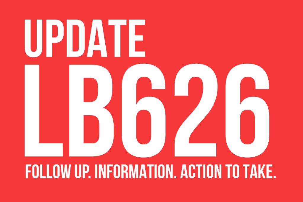 As many have become aware, LB626 did not pass cloture on Select File yesterday. We fell one vote short as Senator Riepe to a Present Not Voting position.