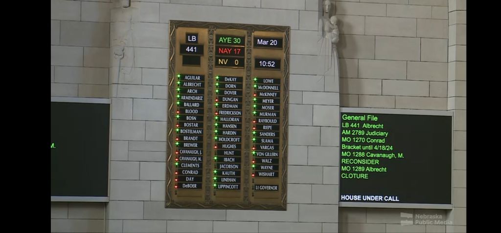 You can watch the Monday night floor debate for LB441 here: https://www.youtube.com/live/sTPXSVQ69tU?si=Qs9AirPouBYnoSxO