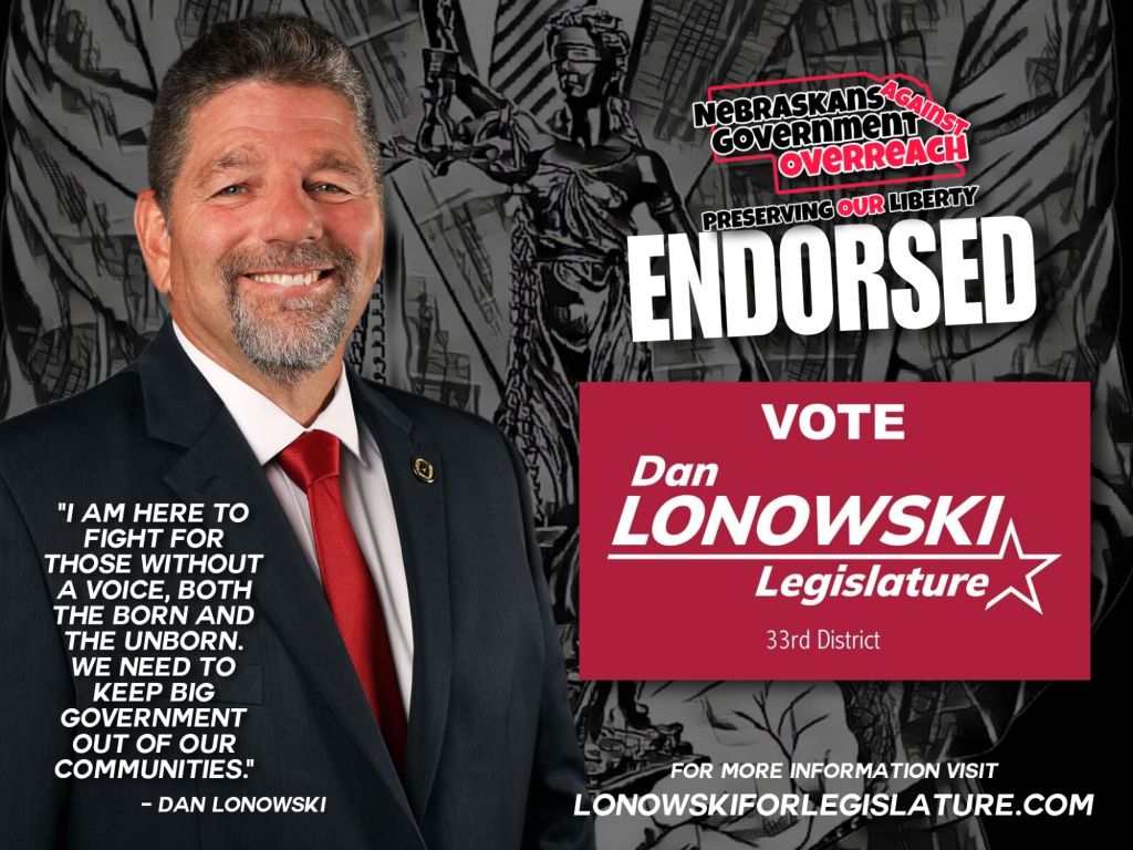 Dan is our second endorsement for this seat following the input from members who have chosen to take a part in this process. When several people reach out saying, “This guy is great and he’ll absolutely stand up against government overreach,” we take notice. Following the endorsement process and thorough vetting, we can confidently say Dan Lonowski would be a phenomenal representative for District 33 Legislature.