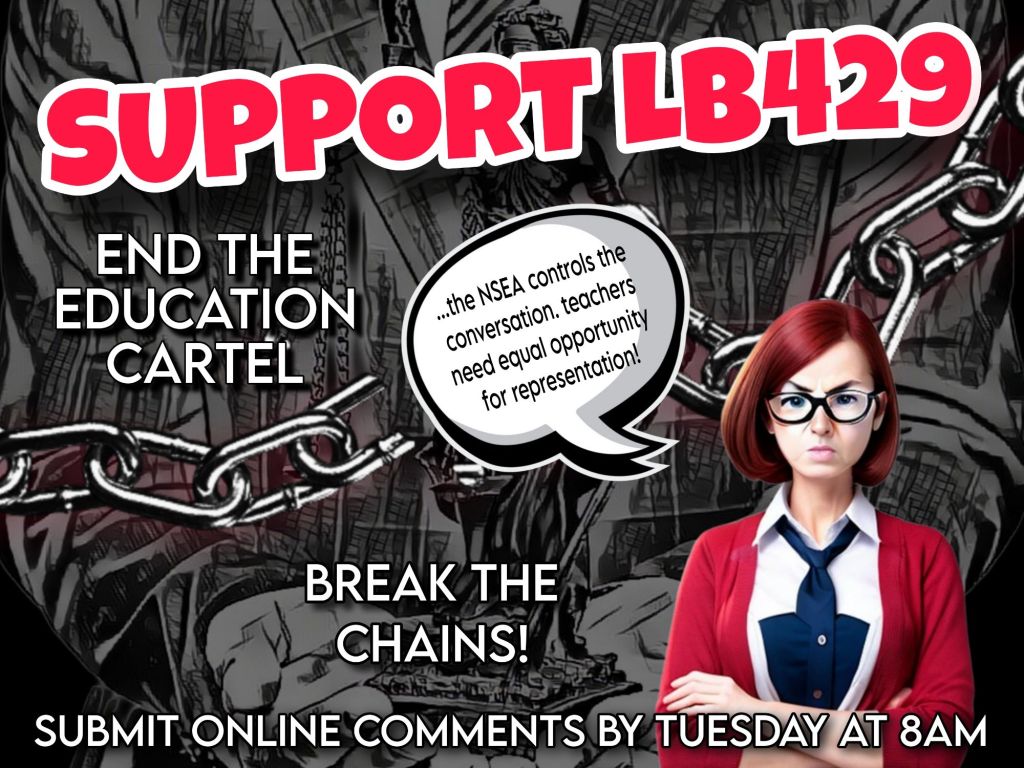 NAGO supports LB429 for very similar reasons. Ultimately, this legislation could very well lead to the dismantling of the stranglehold that the NSEA has over the Legislature and Nebraska’s Education system. Last session they strongly opposed the legislation with the declaration that they had “earned their exclusivity”.