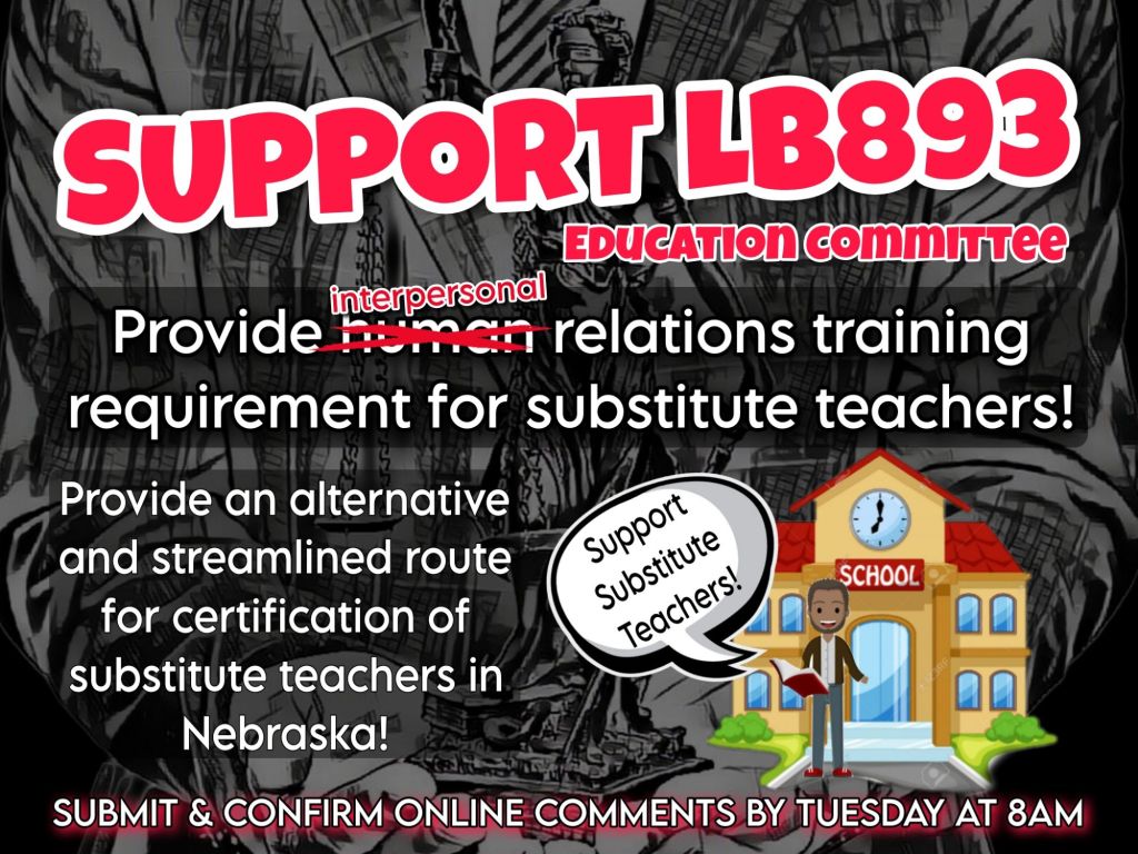 Statement of Intent: *Requires the Nebraska Department of Education to create an alternative online Human Relations Training course and test for individuals seeking to become substitute teachers.*