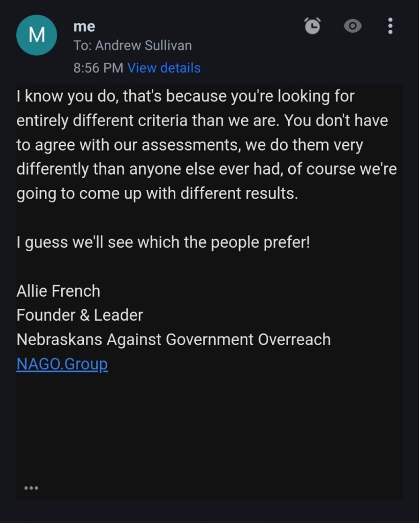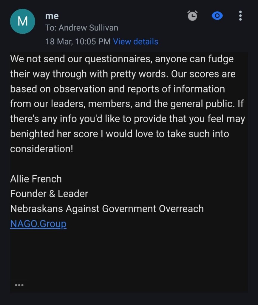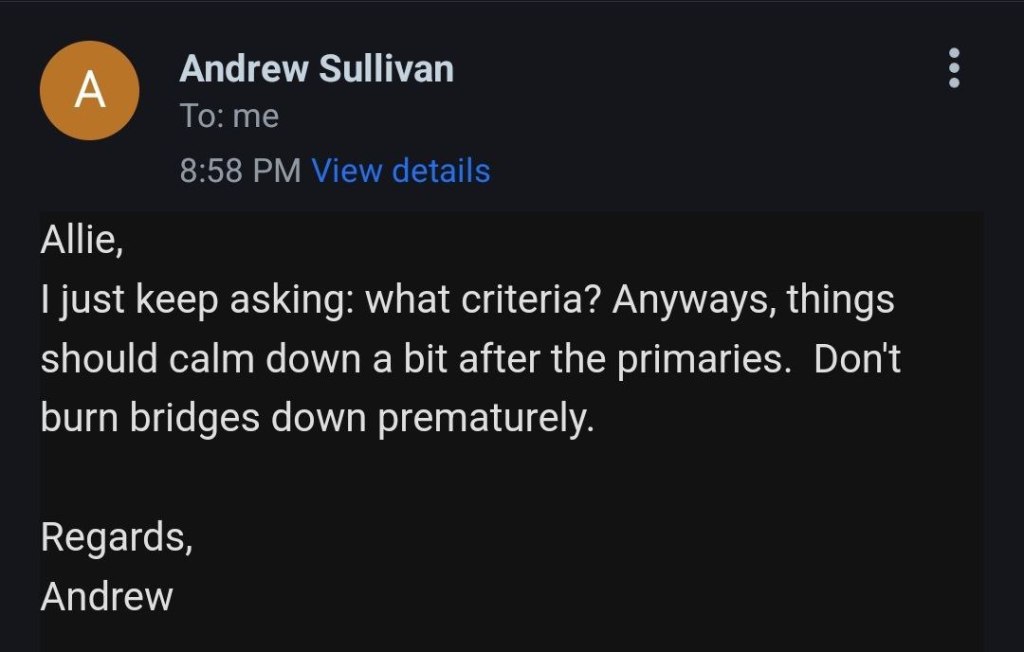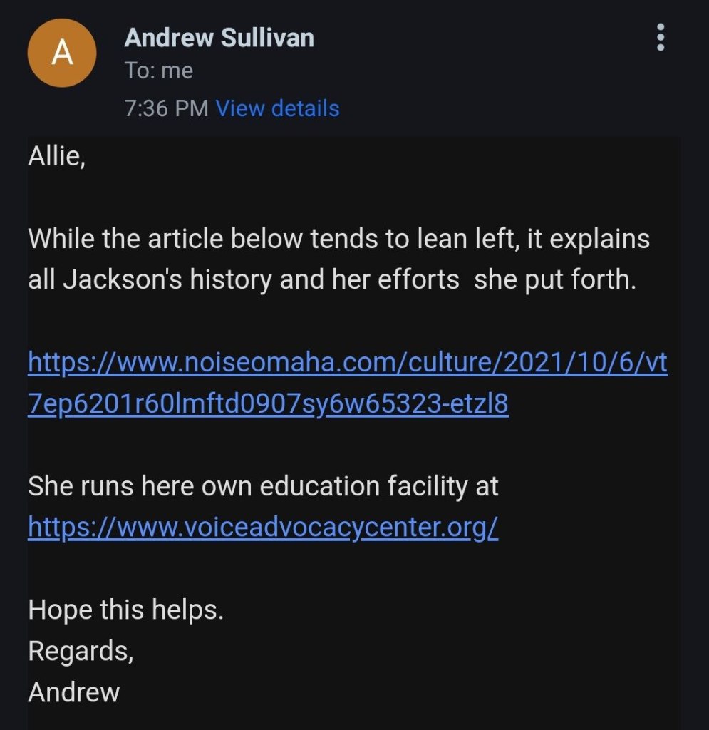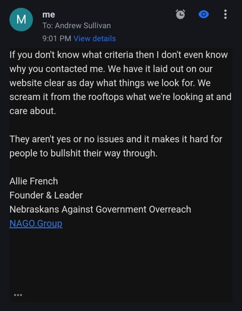 Email conversation with a Andrew Sullivan with Clarice’s campaign team. As you can see there is nothing more to her platform than the claim to stand for school choice. Unfortunately, there are plenty of liberals and socialists that support school choice and nothing shared with us would signify that Clarice is in fact a conservative.