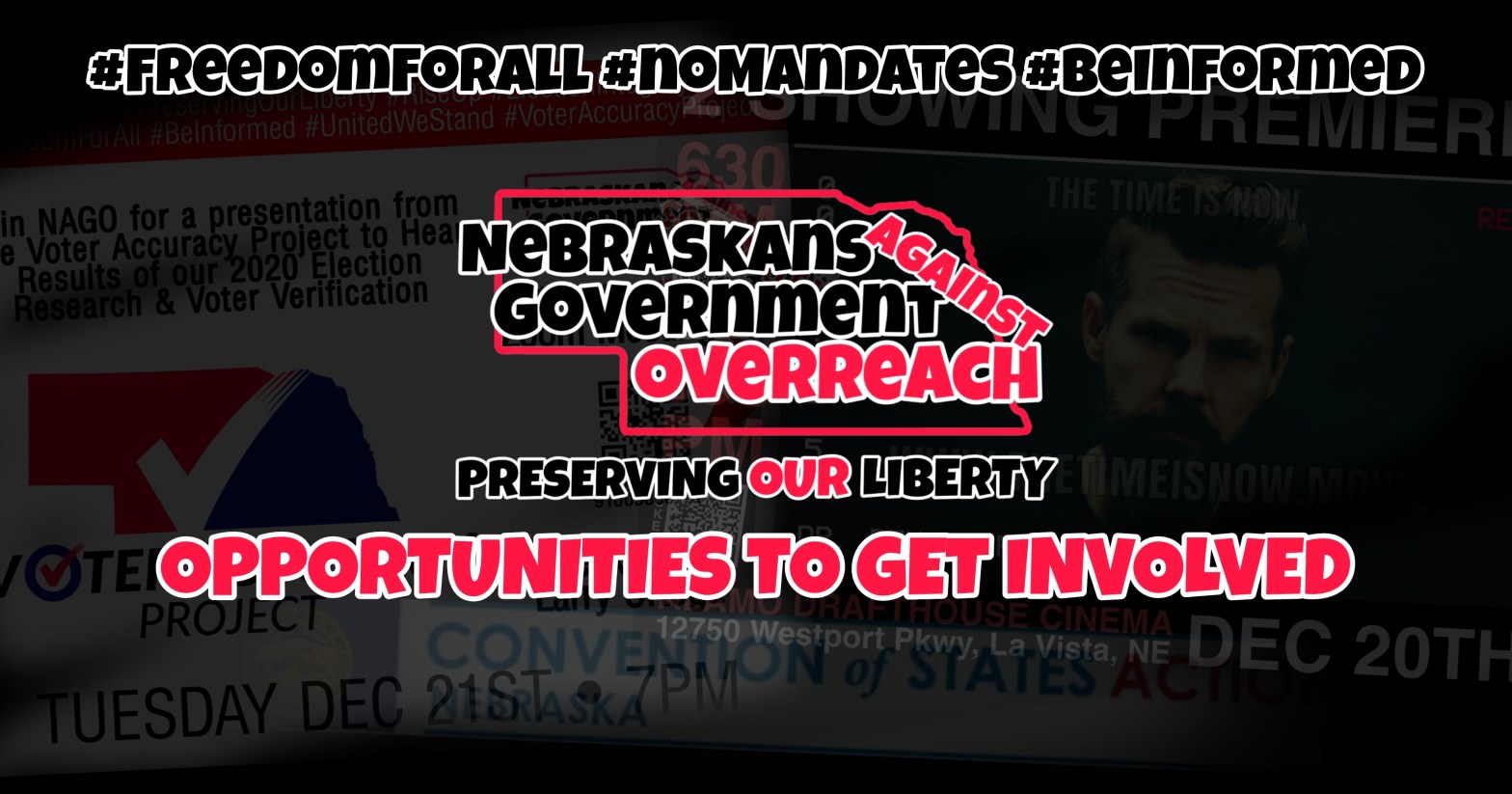 We kick off the week in a new year, 2022! Our leaders and members of NAGO have spent the last year dedicated to the freedoms of Nebraska, of our country, for our children and future generations. Weekly Schedule We have a lighter week this week as we spend this last week preparing for the beginningContinue reading “Weekly Update and Announcements”