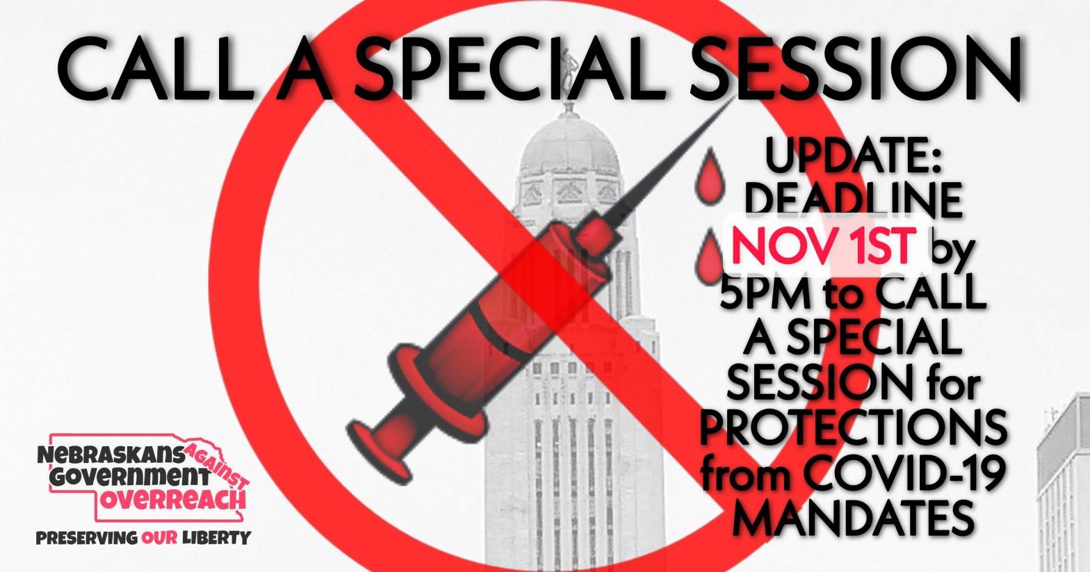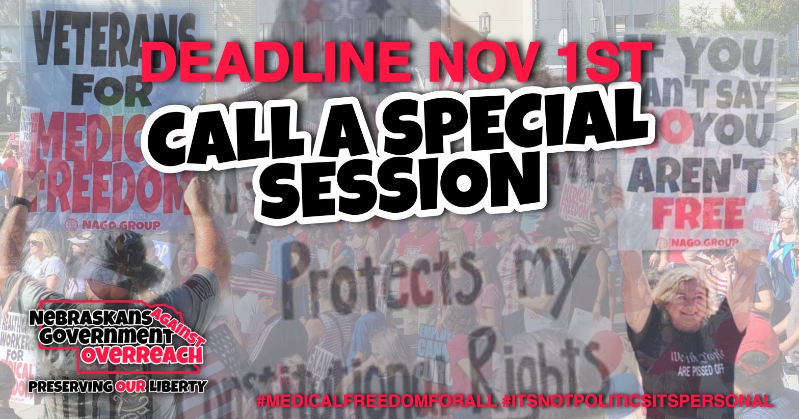 November 1st at 5pm is the deadline for Senators to sign on in support of a special session to discuss and hopefully implement protections from medical mandates. We have new and updated images so we can spread the word as quickly as possible – we NEED YOU to please take the time to hit thatContinue reading “NAGO Weekly Update & Announcements”
