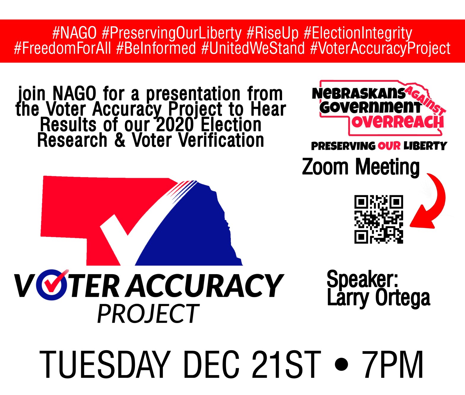 Lincoln area residents tomorrow at 6pm LPS board meeting will be taking place! If you are in the area please join in standing for the community’s children. Thursday Dec 16th The Voter Accuracy Project will be sharing their presentation, which they just shared with the governor, at the Cass County GOP meeting this Thursday! IfContinue reading “NAGO Weekly Schedule”