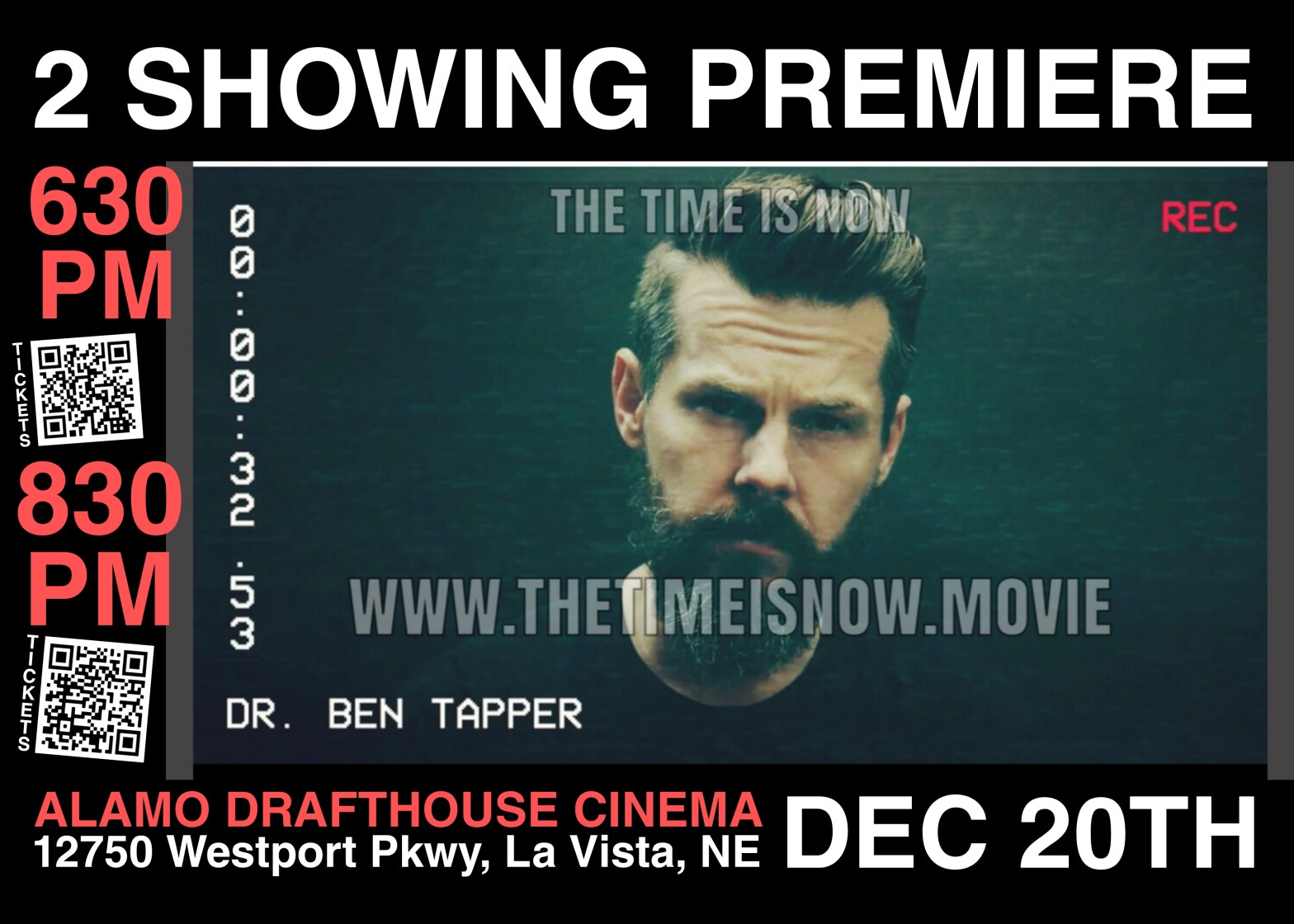 Our very own Dr Ben Tapper is hosting a 2 showing premiere of his documentary: The Time is Now. Get tickets and join us Monday, Dec 20th at the Alamo Drafthouse in La Vista, NE!!! 06:30 PM screening ticket link: https://www.eventbrite.com/e/229162981647 08:30 PM screening ticket link: https://www.eventbrite.com/e/229173663597