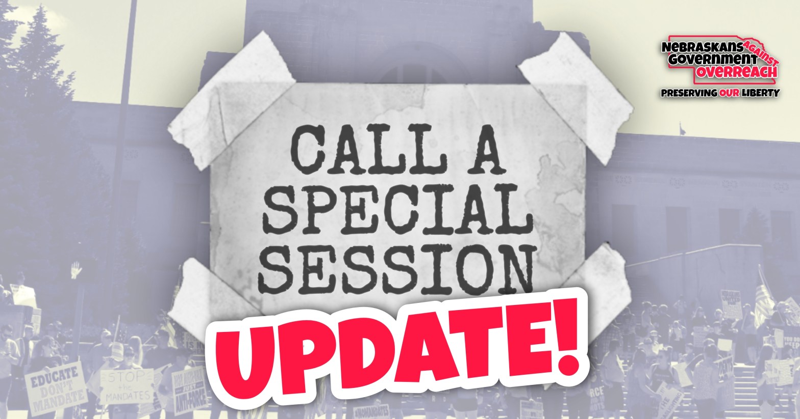 Our hard work is paying off… but! We’re not done yet!!! We at Nebraskans Against Government Overreach appreciate our senators that have taken the steps to implement protections for tens of thousands of Nebraskans who stand to lose their livelihoods due to unconstitutional medical mandates. These deadlines are coming up fast and our communities areContinue reading “NE State Senators Calling for Special Session”